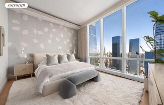 This gorgeous, triple mint luxury one bedroom comes furnished or unfurnished! This new NYC address has become one of the more desired buildings in Manhattan with every luxury amenity and comfort. Sun-flooded and spacious with an open entertaining expanse, the south facing apartment enjoys wide open city views with a peek of the River through floor-to-ceiling windows from the 24th floor. The fully outfitted luxury open kitchen would be the delight of every level chef complete with a bounty of custom oak wood cabinetry, top-of-the-line Miele appliances including a fully integrated refrigerator and dishwasher, wine storage and vented gas cooktop with oven and speed oven and polished Italian Grigio Trambiserra marble counters, backsplash and a waterfall island for casual dining and entertaining. Beautiful wide plank oak floors are found throughout. The south-facing bedroom boasts a large walk in closet and a luxurious en-suite bathroom bathed in marble, a floating stone double vanity, Dornbracht fixtures, a walk-in rain shower and radiant heat floors. Filled with every luxury the apartment additionally offers central air conditioning, a washer and dryer, motorized shades and a large coat closet in the foyer. Live in total comfort at 15 Hudson Yards, the building features 12,000 square feet of amenities including a cinema room for up to 20 people, a club room with billiard tables and a large screen TV, a lounge room, wine tasting room, two corner private dining suites with views, Business center with dual conference rooms and printing station and a golf club lounge featuring a simulator. Wifi is available in all common areas. Wellness to the next level with a 3,500 square foot fitness center with breathtaking views in three directions, a 75 foot-long swimming pool, private studio for yoga and group fitness classes, changing rooms, each furnished with sauna, steam room, showers, bathrooms and lockers and a private spa with two treatment rooms for massages and personal services. Fees to Owner (Due upon Lease Signing) First month's rent + One month security deposit, Fees To the Condo Building & Management: $750 application processing fee.