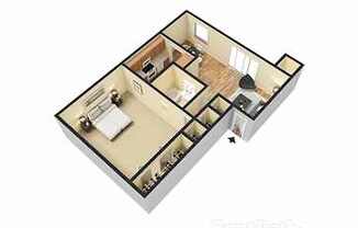 Studio, 1 bath, 600 sqft