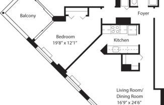 1 bed, 1 bath, 763 sqft