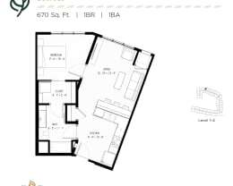 1 bed, 1 bath, 670 sqft