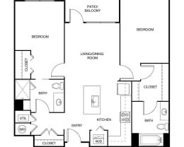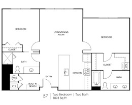 2 beds, 2 baths, 1,073 sqft