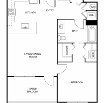 1 bed, 1 bath, 792 sqft