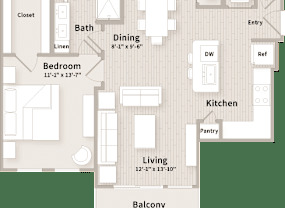 1 bed, 1 bath, 709 sqft
