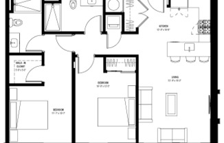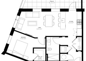 1 bed, 1 bath, 709 sqft