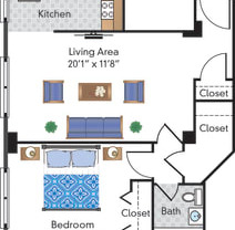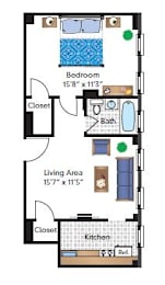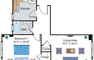 1 bed, 1 bath, 496 sqft