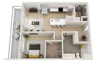 1 bed, 1 bath, 697 sqft