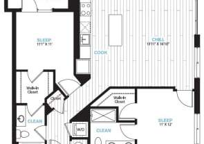 1 bed, 1 bath, 692 sqft