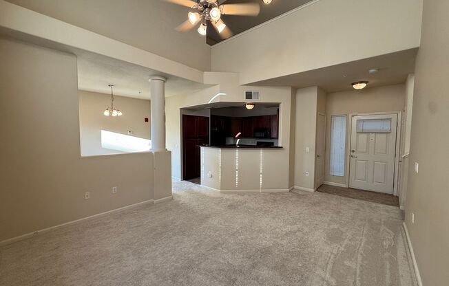 Don't miss this beautiful, one bedroom plus loft condo with private garage in the sought-after Amara Community. The vaulted ceilings add sophisticated charm; the natural light welcomes you into this open floorplan. Enjoy the kitchen which offers granite countertops, ample upgraded cabinets, a breakfast bar, and dining area that leads to the balcony. In-unit laundry room with 'as-is' washer and dryer. This gated community offers added amenities such as a fitness center, pool, and spa. Located near walking trails, large parks, shopping, restaurants, schools and more. Tenant is responsible for flat rate monthly utilities (water, sewer, and trash) in the amount of $250.00. No co-signers, no pets and no smoking. Renter's liability insurance required during tenancy. All Realty Roundup residents are enrolled in the Resident Benefits Package (RBP) for $45/month which includes quarterly HVAC filter delivery, liability insurance, credit building to help boost the resident’s credit score with timely rent payments, up to $1M Identity Theft Protection, move-in concierge service making utility connection and home service setup a breeze during your move-in, our best-in-class resident rewards program and much more! To get the most out of the RBP residents can upgrade into our premium RBP package for ($59.95/month) which includes on-demand pest control. More details upon application. PROPERTY TOURS: 1) It is recommended that you view the online virtual tour and photos of the home. 2) Please drive by the home to make sure it's a neighborhood you like. 3) Submit your completed application online at com 4) Upon approval for the property, you must then view the property with one of our staff, prior to paying your security deposit