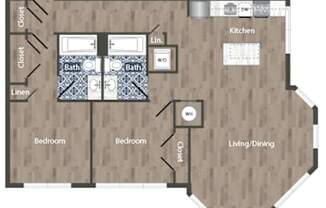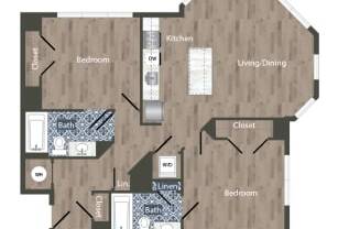 2 beds, 2 baths, 1,034 sqft