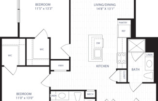 2 beds, 2 baths, 1,332 sqft