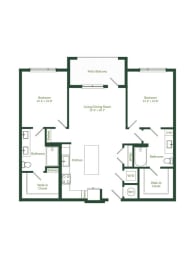 2 beds, 2 baths, 1,317 sqft