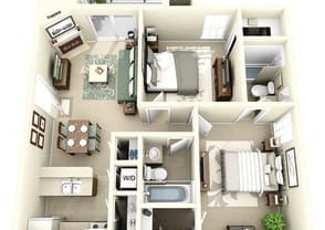 2 beds, 2 baths, 884 sqft