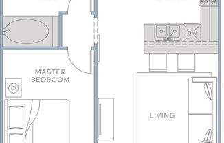 Studio, 1 bath, 633 sqft