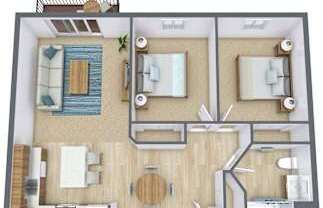 2 beds, 2 baths, 1,000 sqft