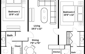 2 beds, 2 baths, 1,008 sqft