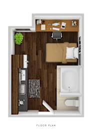 Studio, 1 bath, 207 sqft