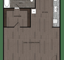 Studio, 1 bath, 480 sqft