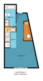 Studio, 1 bath, 350 sqft