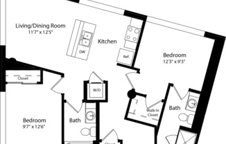 2 beds, 2 baths, 876 sqft