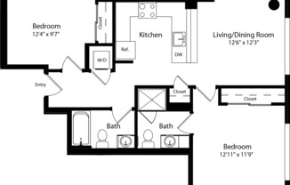 2 beds, 2 baths, 984 sqft