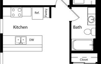 Studio, 1 bath, 544 sqft