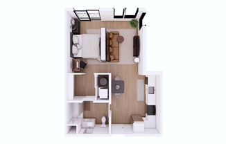 Studio, 1 bath, 410 sqft