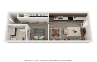 1 bed, 1 bath, 630 sqft