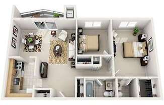 "2 Bed 1 Bath (4 Layouts)", 5 units listed