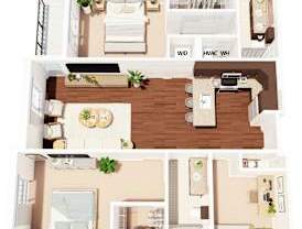 2 beds, 2 baths, 1,211 sqft