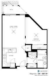 Studio, 1 bath, 687 sqft