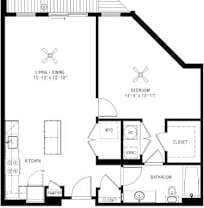 1 bed, 1 bath, 779 sqft