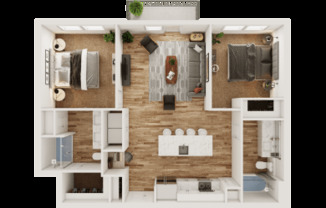 2 beds, 2 baths, 1,064 sqft