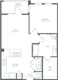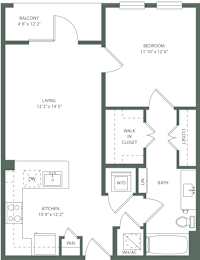Studio, 1 bath, 584 sqft