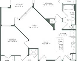 2 beds, 2 baths, 1,101 sqft