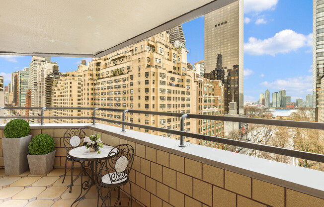 Spacious 1-Bedroom Condo with Balcony, Iconic Views & Full-Service Amenities at Dag Hammarskjold Tower. Residence 10D at the Dag Hammarskjold Tower, a generously proportioned 1-bedroom, 1.5-bath condo located at 240 East 47th Street in Midtown East. Offering approximately 1,074 SF of thoughtfully designed interior space, this home features 9-foot ceilings, excellent natural light, and open north and east exposures with sweeping views of Dag Hammarskjold Plaza, Katherine Hepburn Garden, the United Nations North Lawn, and the East River. The spacious living and dining area is ideal for both entertaining and everyday living with a flexible layout and wall of additional storage. Step outside onto your private balcony, a peaceful retreat perfect for morning coffee or evening unwinding with city and river views. The apartment is in excellent condition and truly move-in ready. Dag Hammarskjold Tower is a full-service condominium offering a 24-hour doorman and concierge, a residents' lounge, children's playroom, large central laundry facility, and a roof deck with panoramic skyline views. The building also features an on-site garage with direct building access. Situated in the heart of Midtown East, this prime location offers easy access to Grand Central Station, the United Nations, world-class dining, shopping, and multiple subway and bus lines, making commuting and city living effortless. Tenants' Fees: First Month's Rent and 1 Month Security Deposit due at Lease Signing Electric usage not included in rent Tenant is required to maintain Renters Insurance Policy Optional Amenities Fees: (1-Year Access): Single Rate: $779 Couple Rate: $1,299 Family Rate: $1,673.25