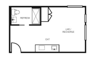 Studio, 1 bath, 308 sqft