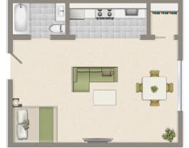 Studio, 1 bath, 625 sqft