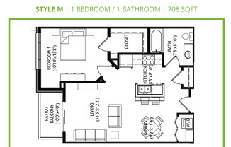 1 bed, 1 bath, 708 sqft