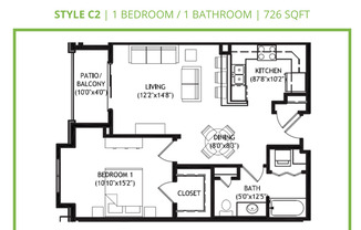 1 bed, 1 bath, 726 sqft