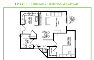 1 bed, 1 bath, 739 sqft
