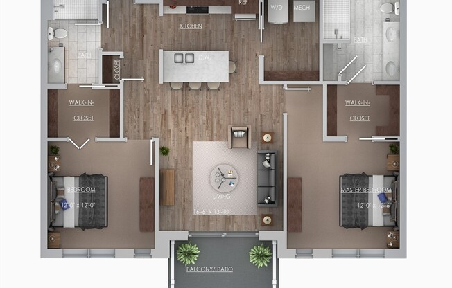 2 beds, 2 baths, 1,232sqft