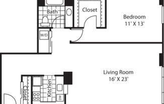 Studio, 1 bath, 616 sqft