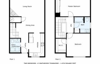 2 beds, 1.5 baths, 1,074 sqft