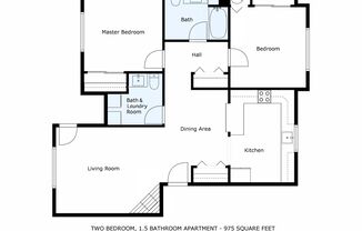 2 beds, 1.5 baths, 975 sqft