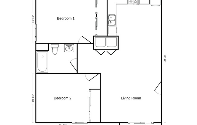 2 beds, 1 bath, 895 sqft