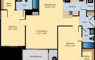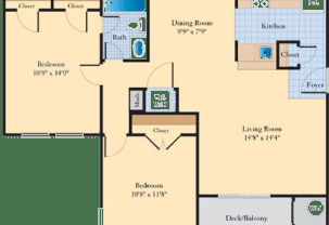 2 beds, 2 baths, 914sqft