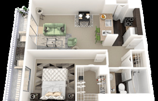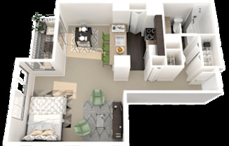Studio, 1 bath, 608 sqft