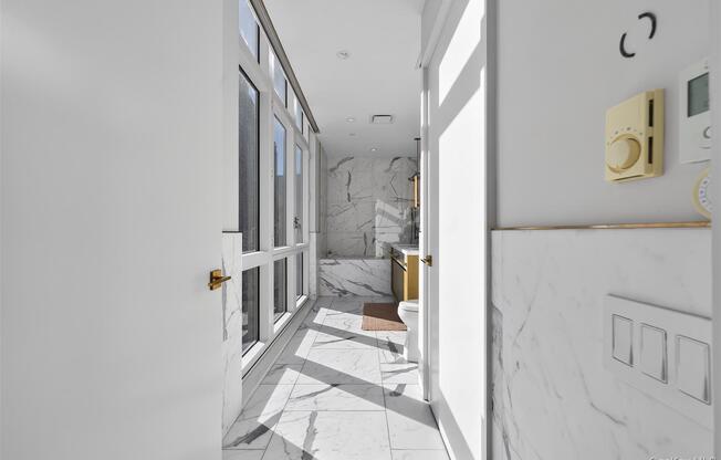 Welcome to Residence 15F, a two-bedroom, two-bathroom home positioned on a high floor within a full-service condominium in Turtle Bay. This corner unit home is filled with natural light through expansive floor-to-ceiling, double-pane windows, complemented by nearly 10-foot ceilings, smoked oak flooring, and central air conditioning throughout. The main living and dining area features an open, flexible layout well-suited to both everyday living and entertaining. The custom Poliform kitchen is thoughtfully appointed with marble countertops, streamlined cabinetry, and integrated Miele appliances. Further conveniences include an in-unit washer and dryer, custom electric solar shades throughout, and blackout shades in each bedroom. The primary bedroom includes ample closet space and a private en-suite bathroom finished in marble, featuring bronze-accented fixtures, a soaking tub, and a glass-enclosed shower. The second bedroom is well sized and positioned near a full bathroom with modern tile finishes. The condominium provides residents with access to a wide range of amenities, including a fitness center, wellness spa with steam room and sauna, movement studio, golf simulator, landscaped courtyard, and an upper-level resident lounge with open city views. Full-service staffing includes a 24-hour doorman, concierge, live-in resident manager, and on-site personnel. Situated near Grand Central Terminal, the United Nations Headquarters, and the East River Esplanade, the location provides convenient access to transportation, dining, shopping, and everyday essentials. A refined rental offering in a well-established Midtown East setting.