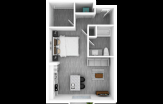 Studio, 1 bath, 524 sqft
