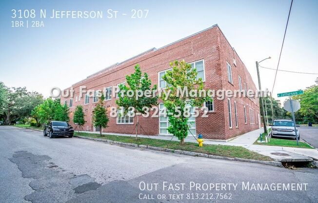 Originally built as the Graham Bottling Factory this historic landmark built in the 1920's has been reimagined as the Bootlegger Factory Flats paying homage to Tampaâs deep prohibition history. Consisting of 22 unique flats, this boutique project is located in the heart of Tampa Heights. The design and finishes are inspired by the vintage industrial aesthetic that is unique to historic factories fabricating a unique urban lifestyle for creatives to thrive. This 2nd floor 1-bedroom 2-bath unit offers an open floorplan with high volume ceilings, can lighting, ceiling fans, brand new windows that allow lots of natural light and custom whitewash wood floors throughout. The kitchen comes equipped with granite counters, solid wood cabinets, deep set undermount sink, retractable faucet, garbage disposal and 4-piece stainless steel appliance set; fridge, glass-top stove, overhead microwave & dishwasher. The bathroom features a solid wood vanity, designer sink, upgraded light fixture, in unit washer dryer closets and a contemporary tiled shower. A $75 flat monthly water fee applies, keeping utility costs predictable. Brand new central A/C and tankless hot water heater, indoor bike storage, secure entry access and parking. The rent includes water, sewer, trash and pest control. All this plus located in the highly sought-after Tampa Heights neighborhood which is minutes from Tampa's favorite restaurants, coffee shops, Ybor City and downtown Tampa. Cat- and dog-friendly (large and small breeds welcome), this community is ideal for residents seeking a central Tampa location with easy access to entertainment, dining, and major employment hubs. Prorated Rent: Applies if the move-in date is not on the 1st of the month. Note: If the move-in is after the 15th, both the prorated rent and the full first month's rent are due. Rental Qualifications: â Credit score of 600+ â No evictions in the past 36 months â Income must be 3x the rent â Background check required Don't miss your chance to call this place home and enjoy below-market pricing for a limited timeâschedule your showing today! â ï¸ Important Notice: For your safety, always transact directly with our management team. We never advertise on Craigslist, and we do not accept payments via Venmo, Zelle, Cash App, or similar apps. If you see our listings elsewhere or are unsure about any communication, contact our office immediately to verify. $75/Month Flat Water Fee Applies